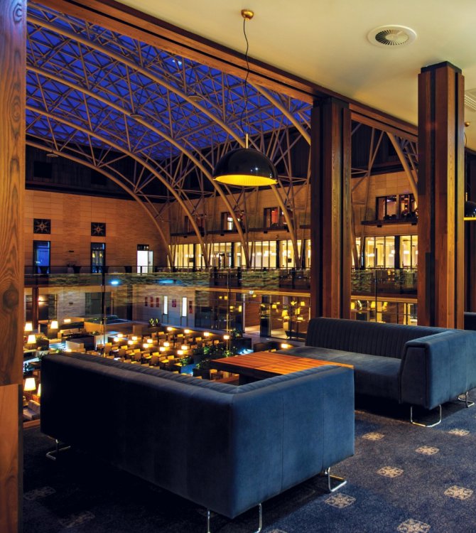 There are comfortable sofas and practical work tables. For the convenience and comfort of our guests, we offer cold and hot drinks. A snack buffet, finger foods, fruits and shortbread cookies are also available.
