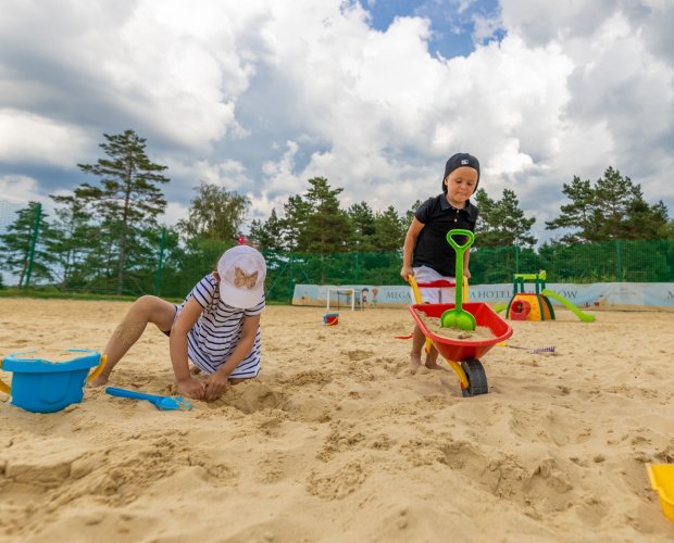 Zapraszamy do skorzystania z nowej atrakcji – Mega Piaskownicy, która zlokalizowana jest przy boisku do sportów plażowych.