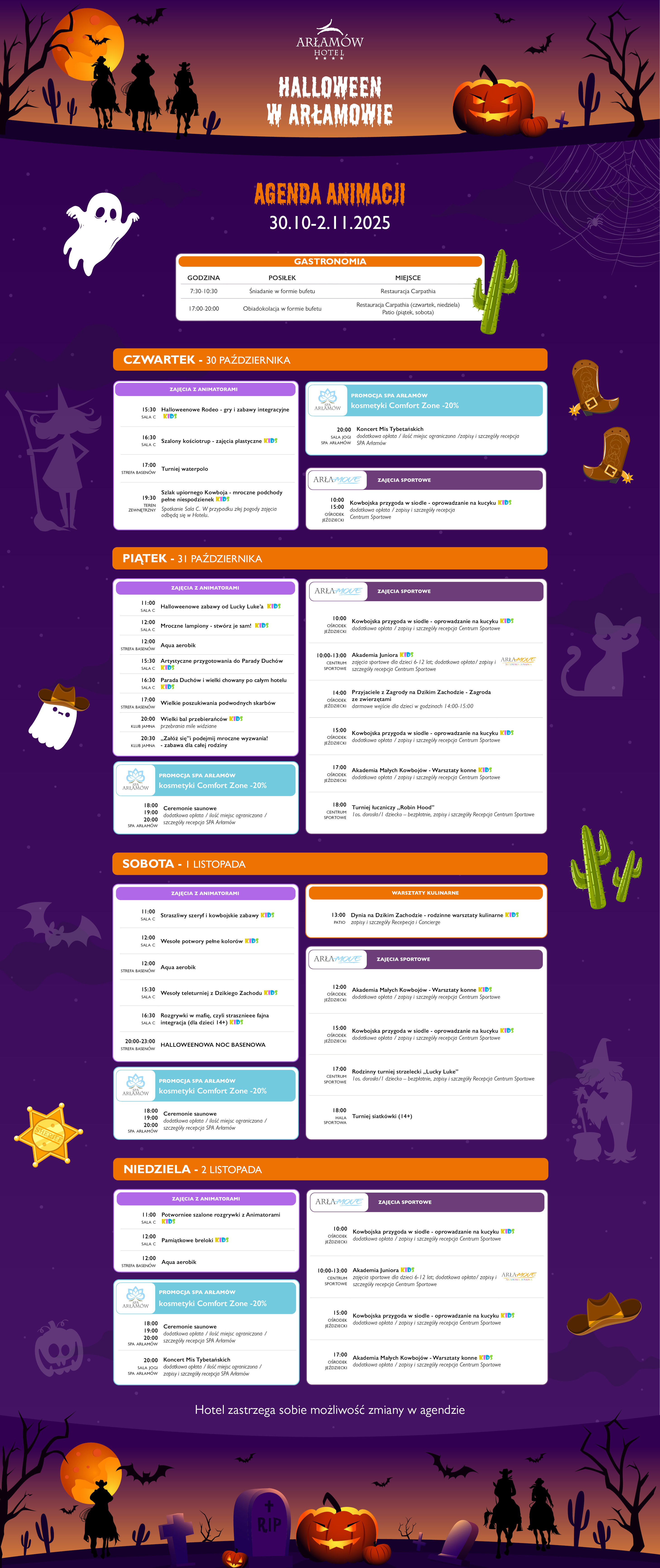 - Halloweenowy program animacji i atrakcji dla dzieci i dorosłych w terminie 31.10.- 2.11.2025