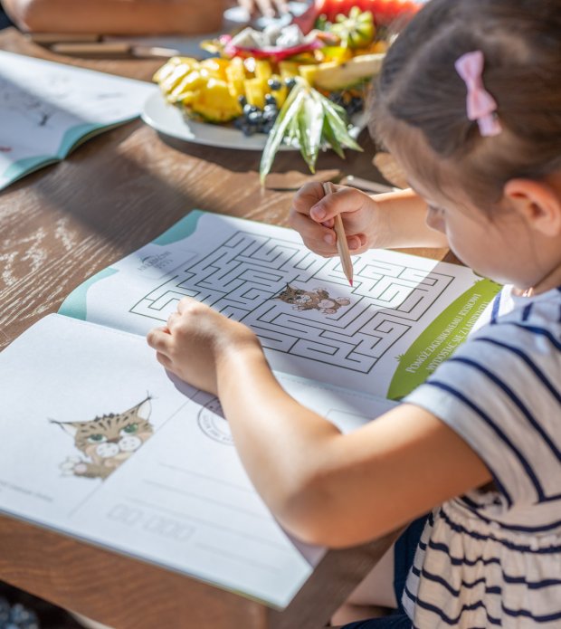 Specjalnie dla naszych najmłodszych Gości przygotowaliśmy pełną atrakcji grę hotelową. W pięknej, kolorowej książeczce znajdziemy wiele kolorowanek i zagadek do rozwiązania. Na terenie całego hotelu dla dzieci znajdują się wyzwania i zabawy. Za poprawne wypełnienie książeczki dzieci otrzymają miły upominek!