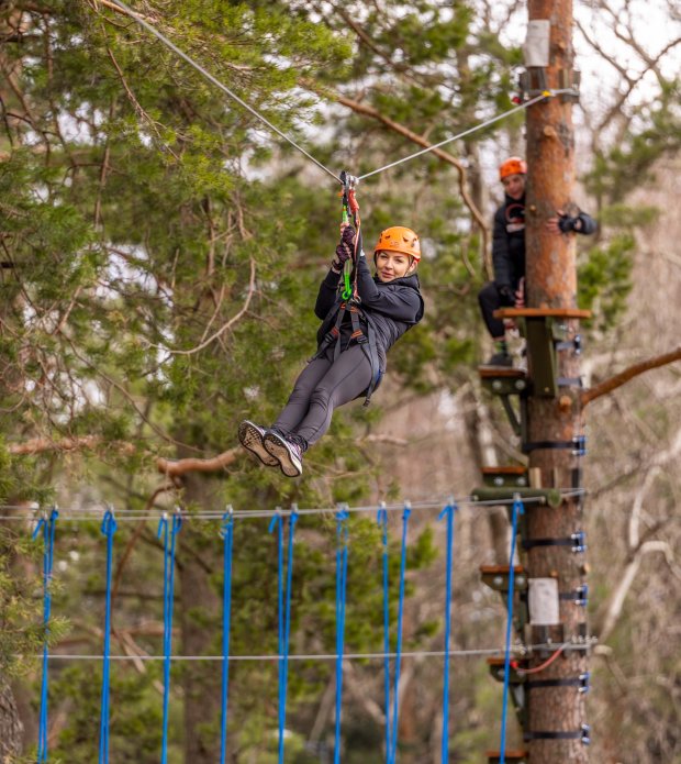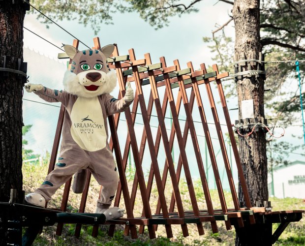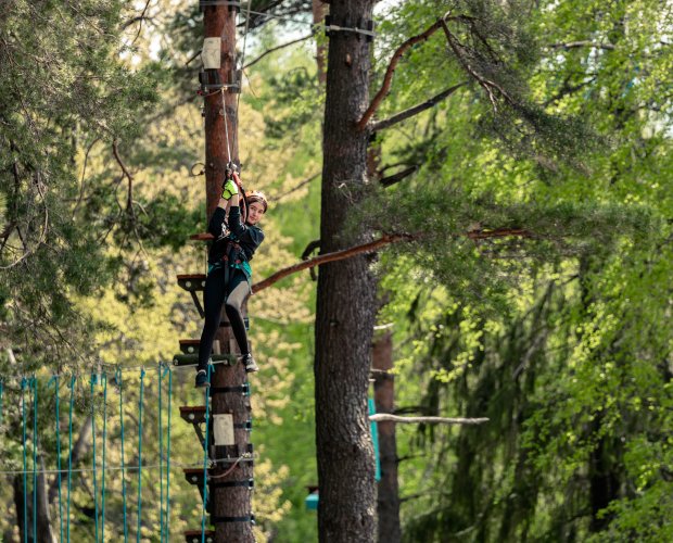 Rozgrzejcie wszystkie mięśnie, bo czeka was nie lada przygoda, a do pokonania będzie ponad 600 m tras z 56 przeszkodami! Aby korzystać z parku linowego trzeba mieć 170 cm wzrostu z ręką wyciągniętą w górę.