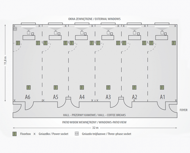 Sala wielofunkcyjna o powierzchni 326 m2, zlokalizowana jest na poziomie 0. Bezpośrednio przy sali znajduje się przestronne foyer o powierzchni 380 m2 z przeszklonymi ścianami, które może być wykorzystywane nie tylko na przerwy kawowe czy lunche, ale także jako powierzchnia wystawiennicza.