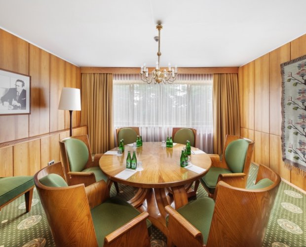 Sala na poziomie 0 Rezydencji Arłamów. Przeznaczona na kameralne spotkania, obrady lub śniadania biznesowe dla maksymalnie 8 osób. Doskonale nadaje się również jako sala do pracy w zamkniętym gronie podczas różnych szkoleń czy paneli.