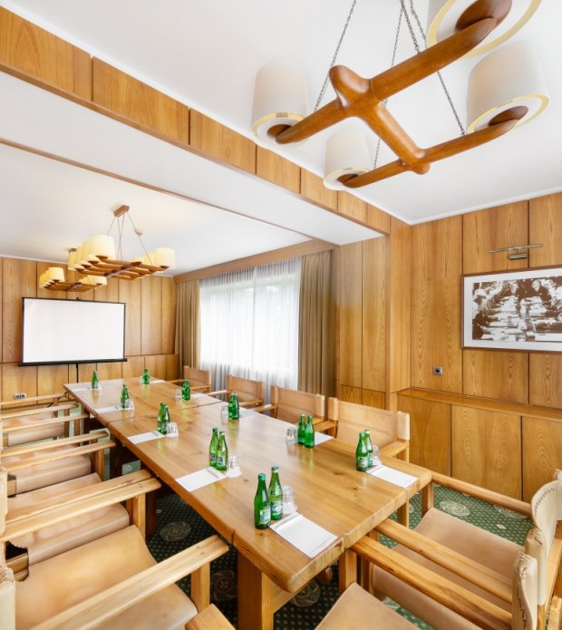 Sala znajduje się na poziomie 0 Rezydencji Arłamów. Ta prostokątna sala o powierzchni 30 m2 przeznaczona jest głównie na kameralne spotkania, warsztaty lub posiedzenia zarządu dla maksymalnie 14 osób.