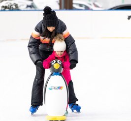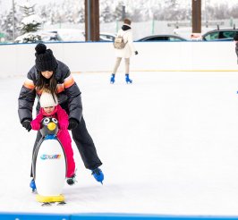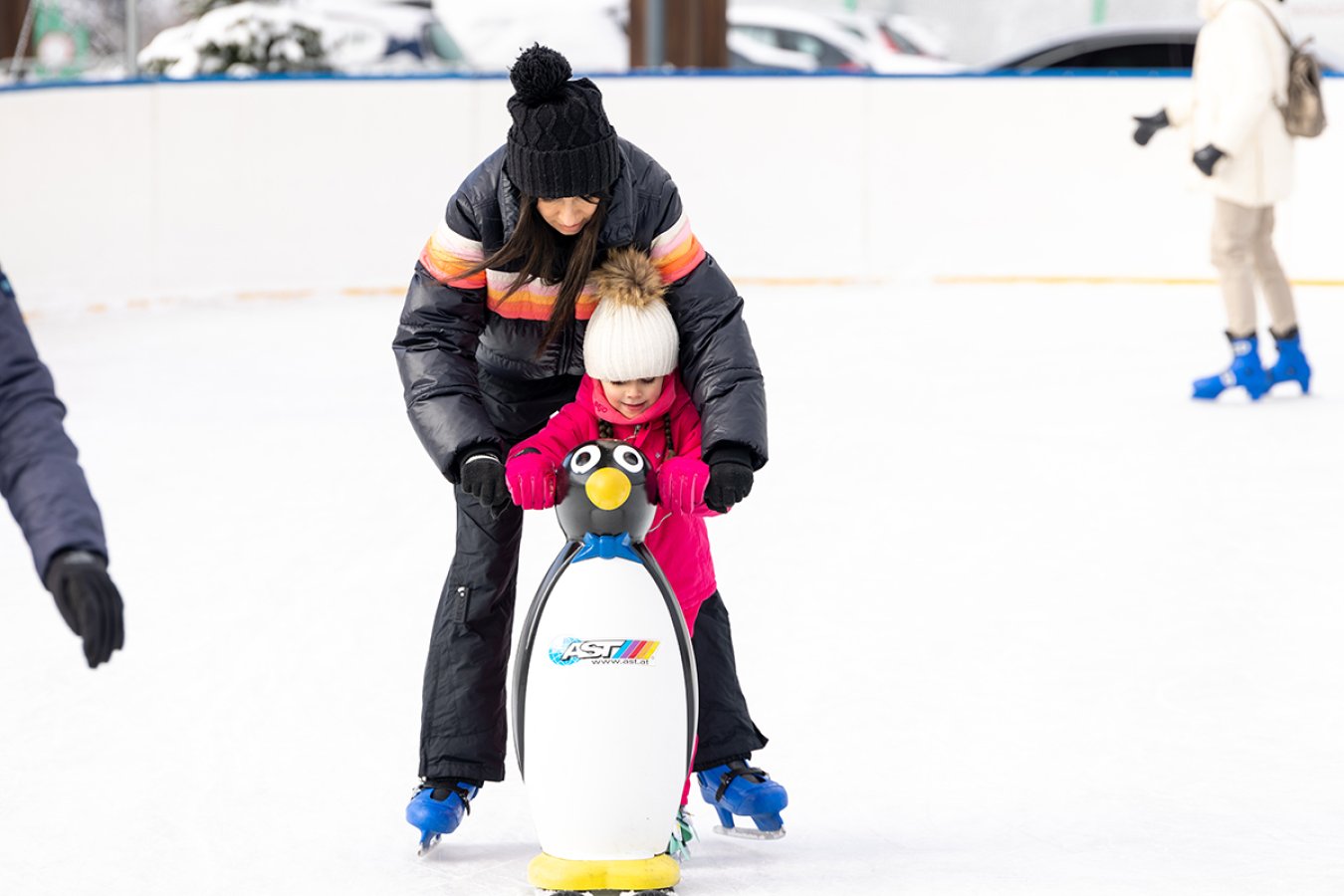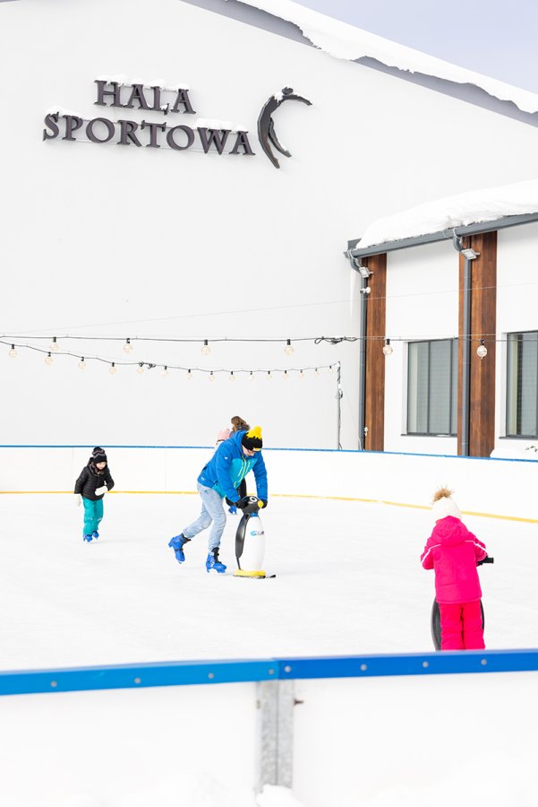 Przy lodowisku czynna jest również wypożyczalnia. Nasi instruktorzy pomogą dobrać sprzęt odpowiedni do posiadanych umiejętności. Dla najmłodszych przygotowaliśmy pomoce w nauce jazdy na łyżwach – pingwinki, które zapewniają dzieciom bezpieczeństwo i stabilność podczas nauki jazdy.