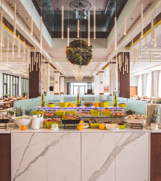 Zlokalizowana na poziomie +1, przestronna restauracja Carpathia, serwuje śniadania i obiadokolacje dla gości indywidualnych. Dodatkowo, na przeszklonym dziedzińcu hotelowym, znajduje się strefa a`la carte. Specjalnością Carphatii są wykwintne dania kuchni europejskiej z elementami kuchni molekularnej i orientalnej.