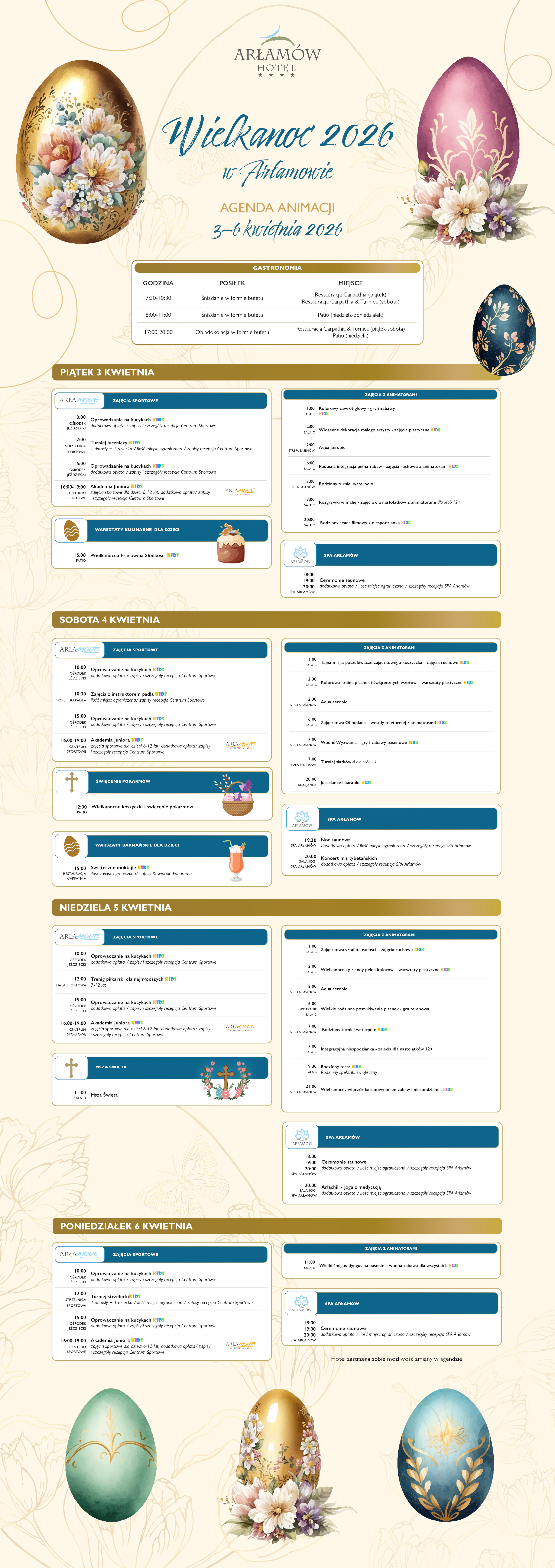 - Dodatkowe atrakcje dla dorosłych i dzieci - w terminie 3-6.04.2026