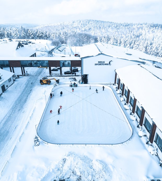 Sztuczne lodowisko Hotelu Arłamów to świetny pomysł na zimową rozrywkę na świeżym powietrzu. Przy dźwiękach muzyki każdy może tu spróbować swoich sił w jeździe na łyżwach. Przy lodowisku otwarta jest również wypożyczalnia sprzętu.